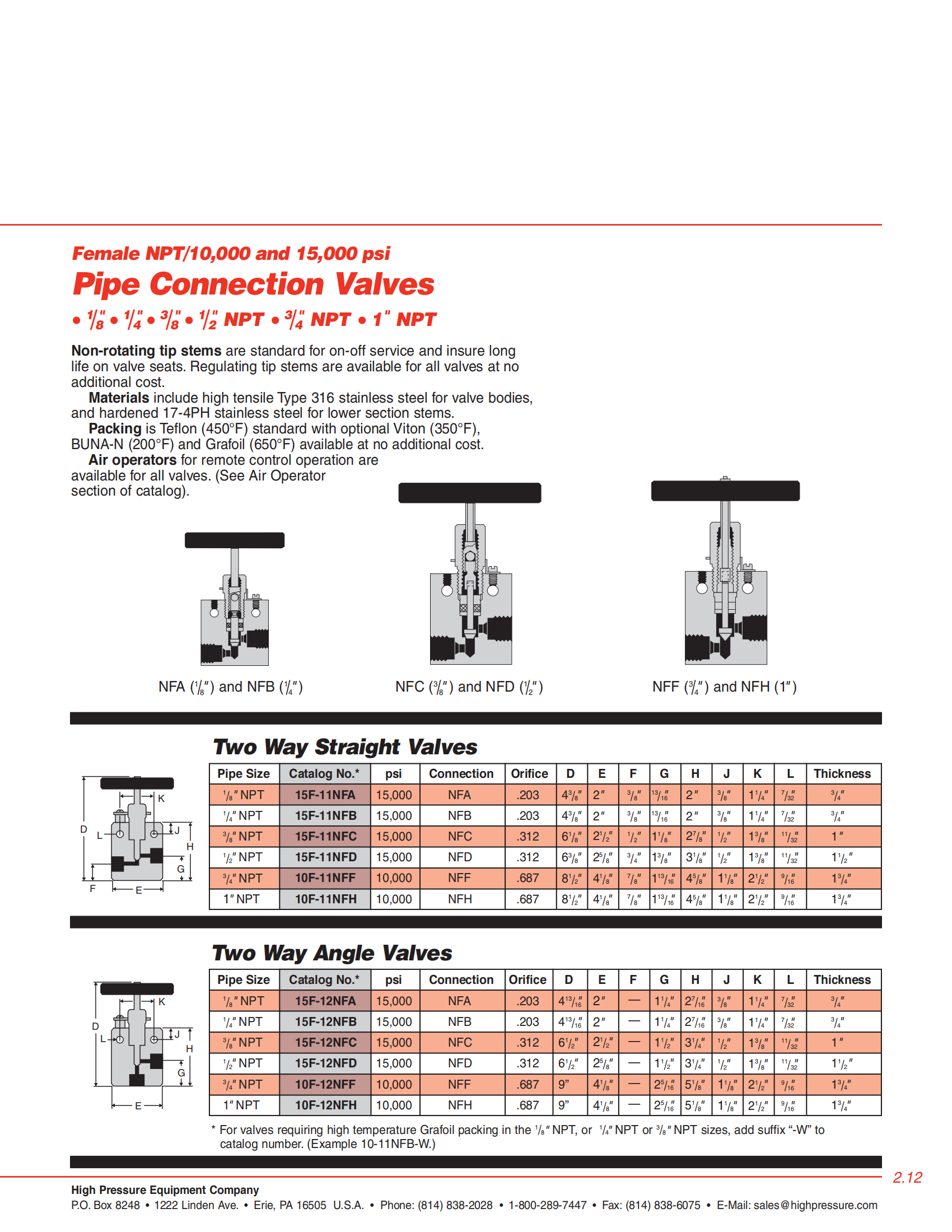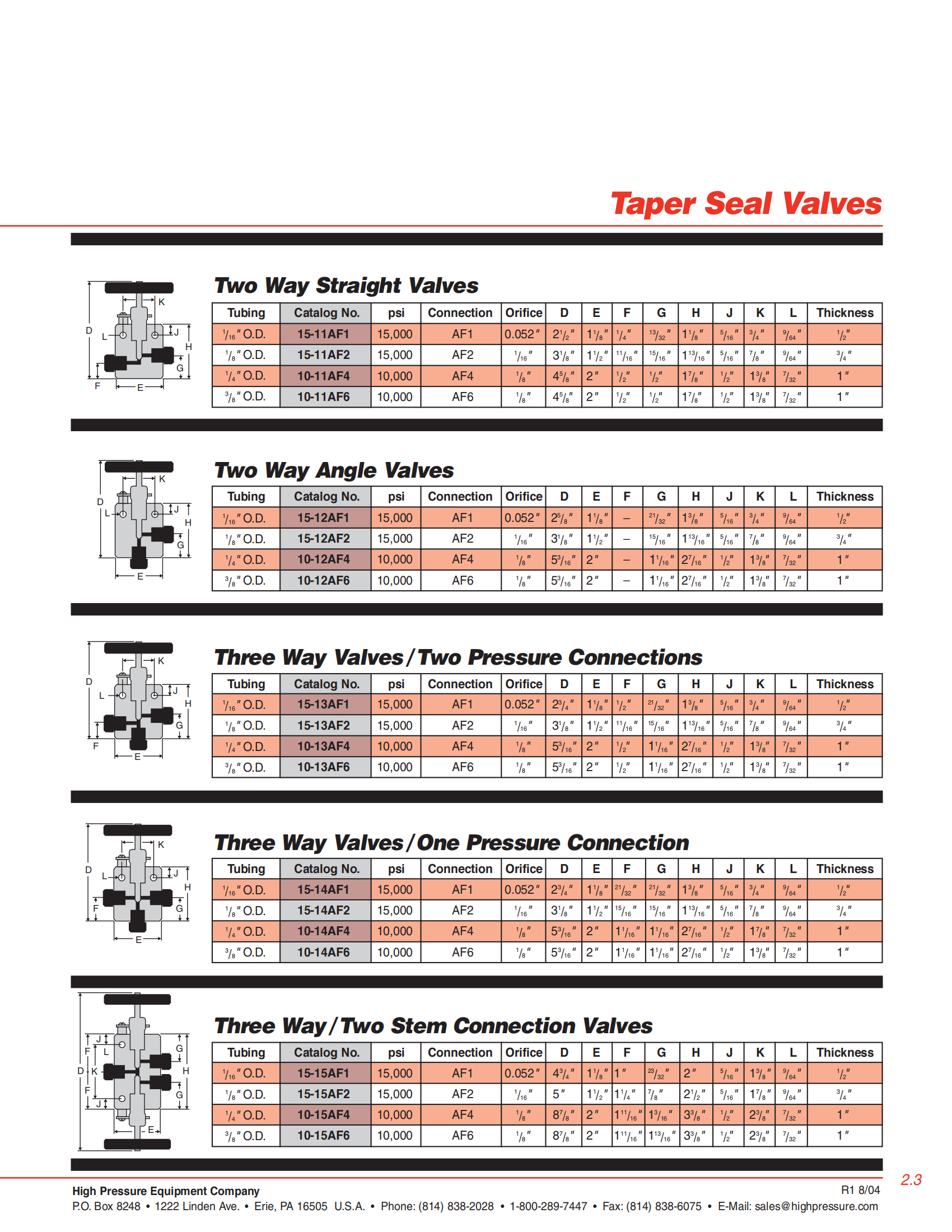 HIP H10000PSI-15000PSI高壓錐形針閥選型表: